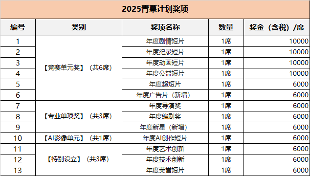 青幕打算做為一個(gè)面向青年影像創(chuàng)做者的攙扶打算,旨正在匯聚有才調(diào)、“影力共振”強(qiáng)調(diào)這些創(chuàng)做者之間的聚合效應(yīng),他們通過(guò)交換、合做、合作,配合提拔創(chuàng)做程度,構(gòu)成一股強(qiáng)大的創(chuàng)做力量。2025年,搜狐青幕打算持續(xù)深耕青年影像創(chuàng)做范疇,以建立良性競(jìng)賽生態(tài)為焦點(diǎn),打制兼具專業(yè)性取性的展現(xiàn)平臺(tái)。通過(guò)青幕大師課、行業(yè)沙龍、創(chuàng)投對(duì)接等多元勾當(dāng),建立集做品展映、身手交換、資本對(duì)接于一體的成長(zhǎng)系統(tǒng),正在激發(fā)創(chuàng)做活力的同時(shí),推進(jìn)青年創(chuàng)做者取片子財(cái)產(chǎn)生態(tài)的深度融合,為影像立異注入持續(xù)動(dòng)能。此次勾當(dāng)由搜狐集團(tuán)(涵蓋搜狐新消息手藝無(wú)限公司、搜狐互聯(lián)網(wǎng)消息辦事無(wú)限公司、飛狐消息手藝(天津)無(wú)限公司、片子家協(xié)會(huì)等)從辦,以下簡(jiǎn)稱“從辦方”或“組委會(huì)”。① 搜集對(duì)象:本屆青幕打算面向45歲以下全國(guó)片子電視收集視聽機(jī)構(gòu)、影視傳媒院校、內(nèi)容出產(chǎn)企業(yè)等相關(guān)單元以及制做人、影視制做從業(yè)者參賽。對(duì)參賽做品類型不做。⑥ 如需添加水印,請(qǐng)于左上角標(biāo)注“青幕打算”或“青幕打算Preview”,此外畫面內(nèi)容不得有任何其他水印標(biāo)識(shí)表記標(biāo)幟,免得影響評(píng)委旁不雅。⑧ 若影片已正在其他片子節(jié)、影展獲得獎(jiǎng)項(xiàng),需正在報(bào)名表上列出所獲獎(jiǎng)項(xiàng)具體消息(需標(biāo)來(lái)歲份、獎(jiǎng)項(xiàng))。l 注:劇情片組別、記載片組別、公益短片組別時(shí)長(zhǎng)為5分鐘到45分鐘;動(dòng)畫片組別時(shí)長(zhǎng)為0到45分鐘。l 以上組別參賽做品若完整影片不克不及線上公映,則參賽者必需上傳可供參賽評(píng)審的完整成片及答應(yīng)搜狐及其聯(lián)系關(guān)系方線上播放的預(yù)告片。l 時(shí)長(zhǎng)、題材不限,正在不學(xué)問(wèn)產(chǎn)權(quán)和其他法令律例的前提下,具有貿(mào)易元素的動(dòng)畫短片、記載短片、劇情短片、嘗試短片、微片子等。 搜狐有權(quán)要求參賽者供給完整的內(nèi)容權(quán)屬證明。如平臺(tái)發(fā)覺參賽做品的內(nèi)容為搬運(yùn)、抄襲等非原創(chuàng)/侵權(quán)內(nèi)容,搜狐有權(quán)下線響應(yīng)內(nèi)容并打消參賽者參取勾當(dāng)?shù)馁Y歷。5。 選擇并復(fù)制做品視頻網(wǎng)址,前去青幕打算官網(wǎng)報(bào)名頁(yè)面閱讀章程,填寫報(bào)名表和參賽消息,于指定處填入做品的搜狐視頻網(wǎng)址并提交。l 要求超短片組別、告白片組別參賽做品正在2025年8月26日至2026年2月26日期間連結(jié)公開形態(tài)。(不成刪除或設(shè)為自見;刪除、自見的評(píng)選做品無(wú)法獲獎(jiǎng)。)l 以上兩個(gè)單位正在搜狐視頻APP按要求上傳后,需復(fù)制視頻鏈接正在官網(wǎng)繼續(xù)完成報(bào)程,于報(bào)名頁(yè)面填寫該參賽做品的搜狐視頻鏈接及相關(guān)從創(chuàng)消息,不得反復(fù)送達(dá)。l 時(shí)長(zhǎng)、題材不限,正在不學(xué)問(wèn)產(chǎn)權(quán)和其他法令規(guī)的前提下,要求AICG手藝創(chuàng)做而成的劇情短片、嘗試短片包羅但不限于視覺創(chuàng)意、現(xiàn)代藝術(shù)、嘗試視頻等。 搜狐有權(quán)要求參賽者供給完整的內(nèi)容權(quán)屬證明。如平臺(tái)發(fā)覺參賽做品的內(nèi)容為搬運(yùn)、抄襲等非原創(chuàng)/侵權(quán)內(nèi)容,搜狐有權(quán)下線響應(yīng)內(nèi)容并打消參賽者參取勾當(dāng)?shù)馁Y歷。【專業(yè)單項(xiàng)獎(jiǎng)】、【出格設(shè)立獎(jiǎng)】將會(huì)正在入圍影片中以各獎(jiǎng)項(xiàng)尺度擇優(yōu)選出,無(wú)需參賽者反復(fù)送達(dá)或零丁報(bào)名。以【致敬典范】為名傳送對(duì)證量、傳承取立異的苦守。通過(guò)影像做品挖掘“匠心”取“時(shí)代符號(hào)”,通過(guò)青年導(dǎo)演的創(chuàng)意沉構(gòu),付與品牌新的生命力,注:除從競(jìng)賽單位外增設(shè)從題展映單位或貿(mào)易贊幫單位,針對(duì)增設(shè)單位會(huì)增設(shè)對(duì)應(yīng)獎(jiǎng)項(xiàng)。參賽者無(wú)需反復(fù)送達(dá),從辦方會(huì)正在入圍影片當(dāng)選擇合適從題的影片。進(jìn)行入圍通知時(shí),從辦方將取參賽者二次確認(rèn)能否加入【增設(shè)單位】。已確認(rèn)【增設(shè)單位】影片不得以任何來(lái)由撤回或退出,如參賽者不加入【增設(shè)單位】則默認(rèn)退出合作【增設(shè)單位】對(duì)應(yīng)獎(jiǎng)項(xiàng)資歷,統(tǒng)一部影片僅能送達(dá)一個(gè)競(jìng)賽單位,不得反復(fù)報(bào)名。如遇組委會(huì)鑒定影片取所送達(dá)競(jìng)賽單位不合適的環(huán)境,組委會(huì)有權(quán)變動(dòng)影片參取評(píng)選的競(jìng)賽單位。