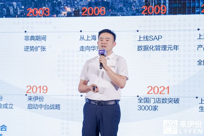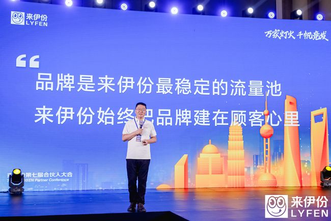 ▲來伊份第七屆合伙人大會開幕6月26日,來伊份第七屆合伙人大會在上海盛大啟幕。在這場以“萬家燈火 千帆競發(fā)”為主題的行業(yè)盛會上,來伊份創(chuàng)始人、董事長施永雷以及各業(yè)務板塊負責人分別圍繞品牌、產(chǎn)品以及企業(yè)的發(fā)展與機遇等方面進行了分享,并在與現(xiàn)場來自全國各地超200位加盟商代表的對話中著重強調(diào)了“萬家燈火”對于來伊份集團的重要戰(zhàn)略意義。合伙人大會的召開,為來伊份未來的發(fā)展奠定了基調(diào),也為所有來伊份的合作伙伴指明了發(fā)展的方向。推動“萬家燈火”,共探市場新機遇品牌的發(fā)展要經(jīng)歷市場不斷的洗禮,而業(yè)態(tài)的生命周期,則直觀地反映出品牌在市場中的生命力。在大會開幕致辭中,董事長施永雷回顧了25年來的發(fā)展歷程,他表示從1999年第一家店開始,到現(xiàn)在的超3700家店,來伊份的商業(yè)模式清晰且品牌堅韌。